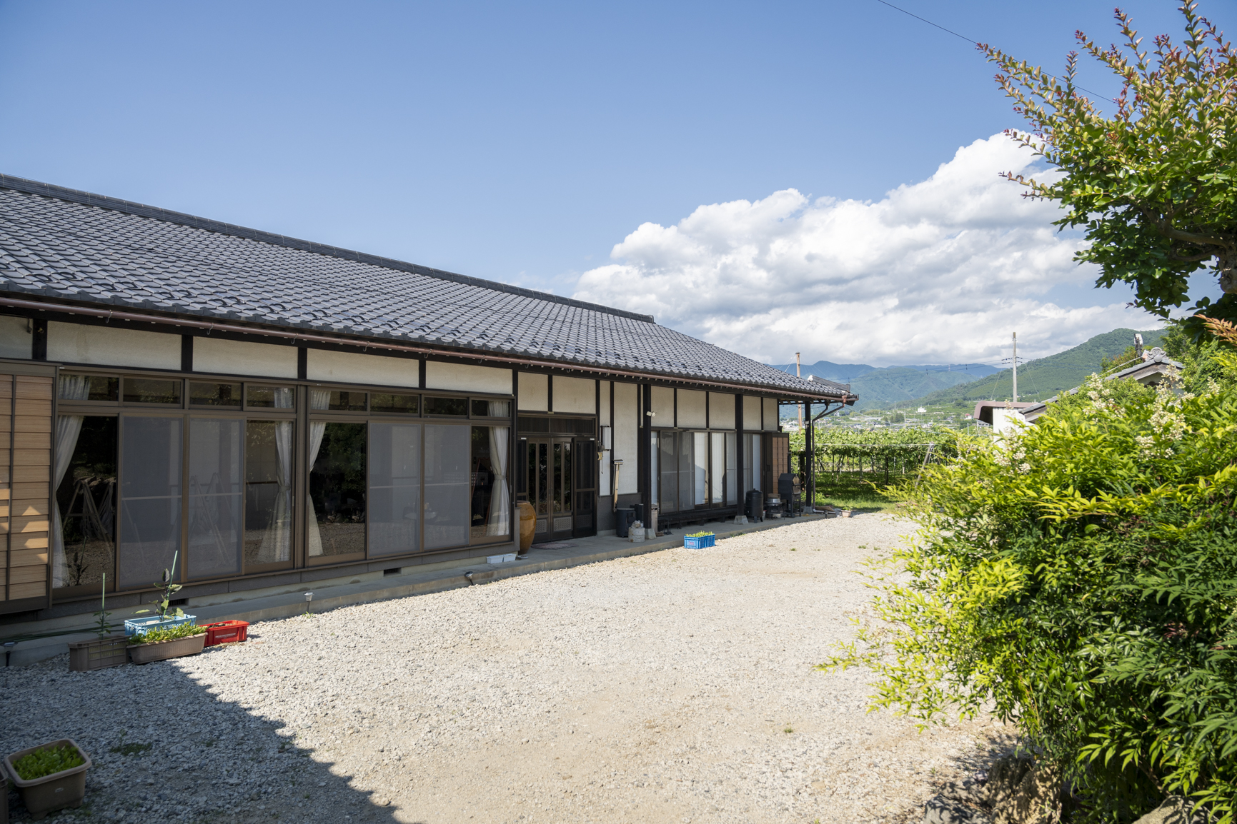 「桃源の家」です。桃源の家は桃畑に囲まれた平屋の日本家屋のお家となります。